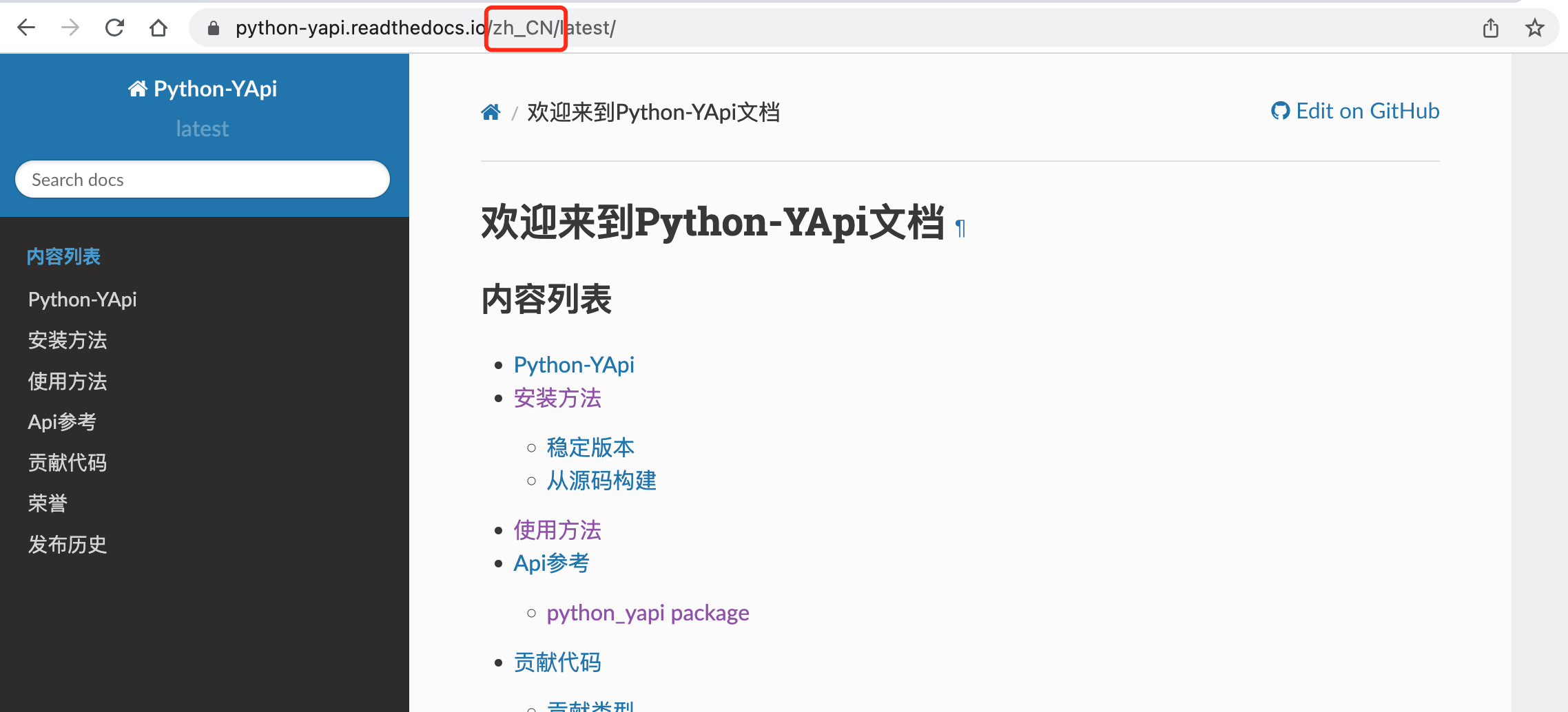 - 查看文档,将url中的en修改为zh_CN后即可查看中文文档,如下图