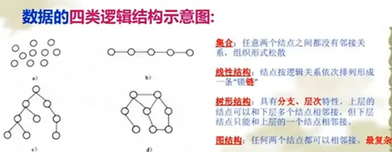 b. 链式存储结构:是指每隔存储结点除了含有一个数据元素外,还包含指针,每个指针指向一个与本结点有逻辑关系的结点,用指针表示数据之间的逻辑关系